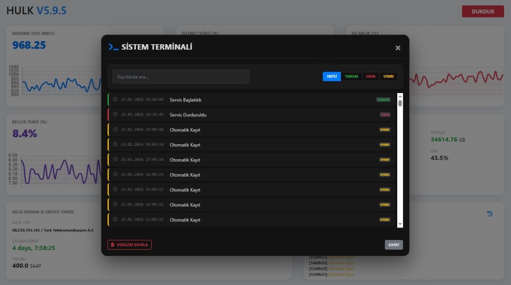 Gördüğünüz üzere tasarımı olarak kendime göre uyarladım ve şık bir tasarım elde ettim göründüğü üzere 🙂 Sistem siz başlattığınız zaman sürekli bir download yapar ve bilgileri saat başı kayıt eder. Bu sebepten ötürü SD kart ömrü de uzamış olur. Ayrıca elektrik kesintilerinde cihaz tekrar çalıştığında yeniden kaldığı şekilde devam eder. Detaylara fazla girmiyorum. Sizde Google Gemini yapay zeka kullanarak böyle bir uygulama yaptırabilirsiniz. 🙂